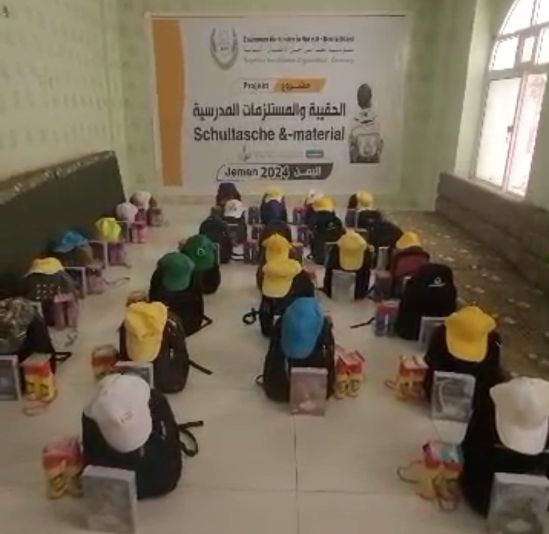تم توزيع الحقيبة والمستلزمات المدرسية فى الجمهورية اليمنية. شمل المشروع توزيع 485 حقيبة مدرسية كل حقيبة تحتوي على: