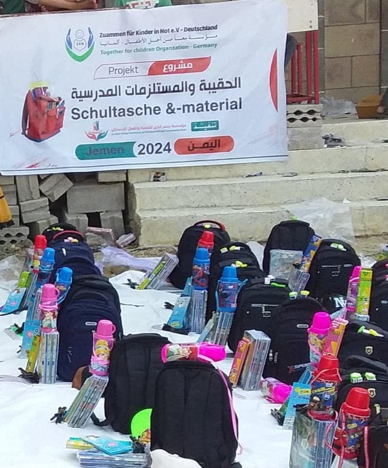 فى هذا العام 2024 نفذت مؤسسة جسر الخير للتنمية والعمل الإنساني مشروع توزيع الحقيبة المدرسية مع المستلزمات المدرسية فى الجمهورية اليمنية. المشروع بتمويل من مؤسسة معا من أجل الأطفال فى ألمانيا. استفاد من المشروع العديد من تلاميذ المدارس من الأطفال الأيتام والمحتاجين.