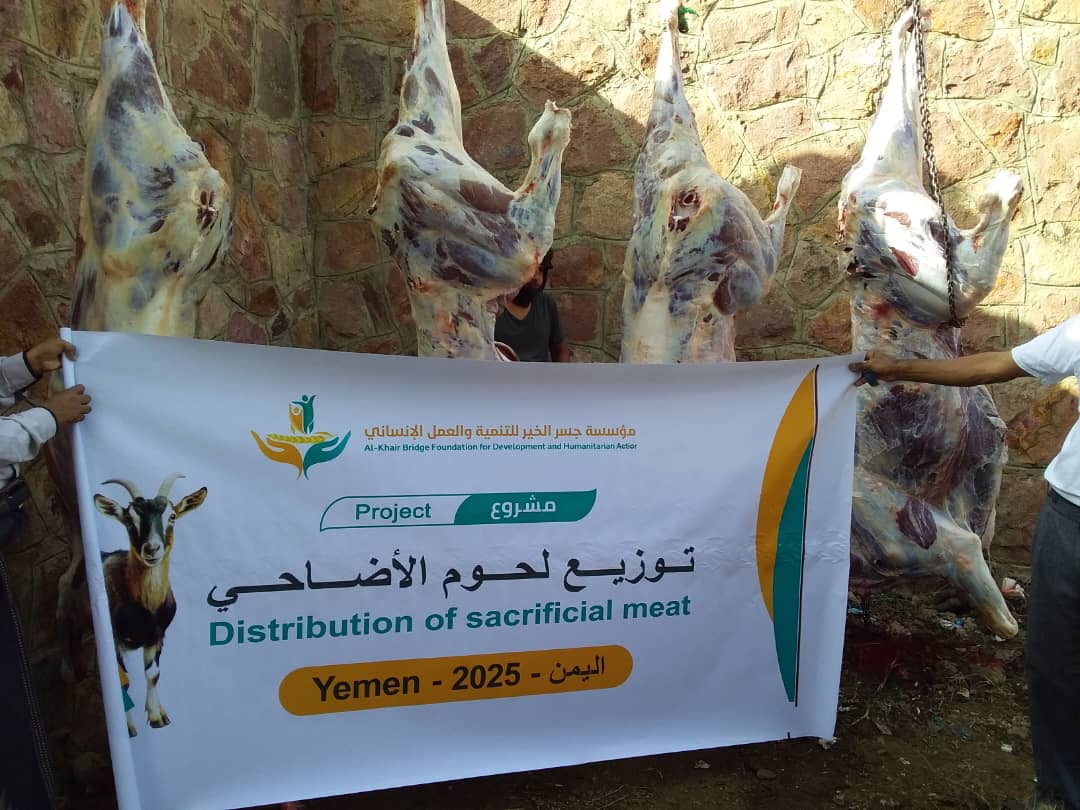 فى هذا العام 2024 نفذت مؤسسة جسر الخير للتنمية والعمل الإنساني مشروع توزيع لحوم الأضاحي فى الجمهورية اليمنية. المشروع بتمويل من مؤسسة معا من أجل الأطفال فى ألمانيا. استفاد من المشروع العديد من الأسر الفقيرة والمحتاجة.
