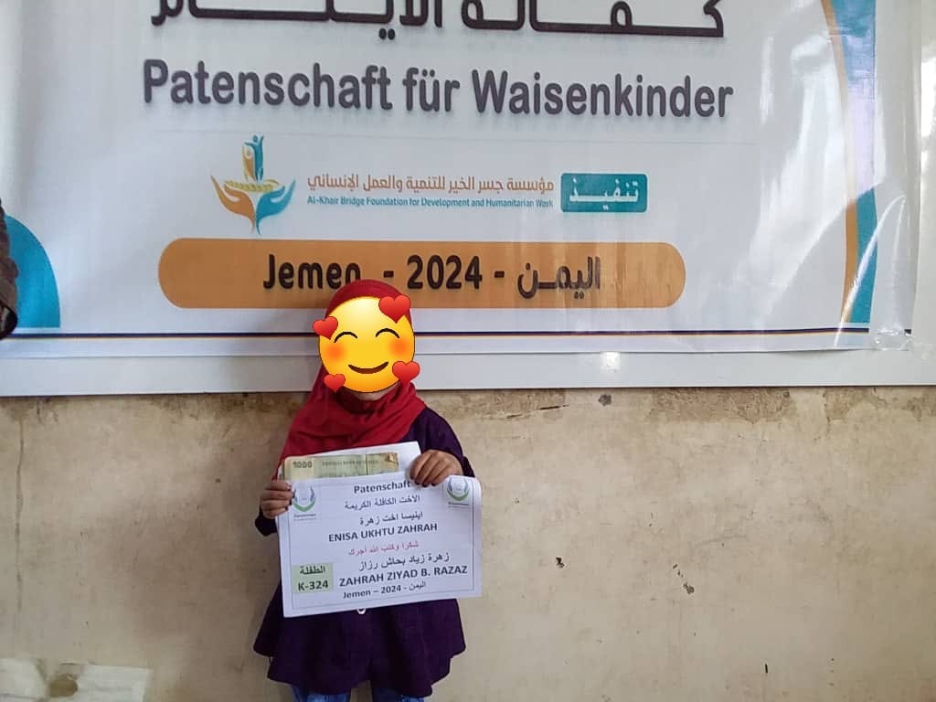 فى هذا العام 2024 تمكنت مؤسسة جسر الخير للتنمية والعمل الإنساني من كفالة العديد من الأيتام فى الجمهورية اليمنية. المشروع بتمويل من مؤسسة معا من أجل الأطفال فى ألمانيا.